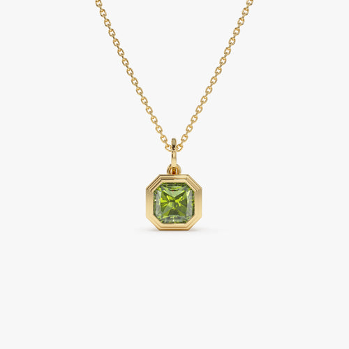 14K Asscher Cut Bezel Set Peridot Necklace -