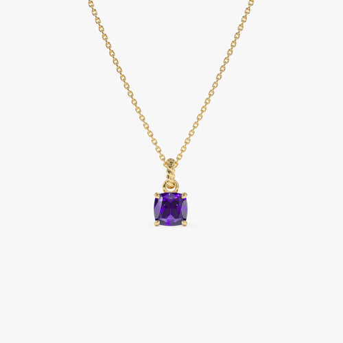 14K Cushion Cut Amethyst Solitaire Necklace