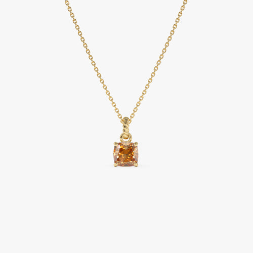 14K Cushion Cut Citrine Solitaire Necklace