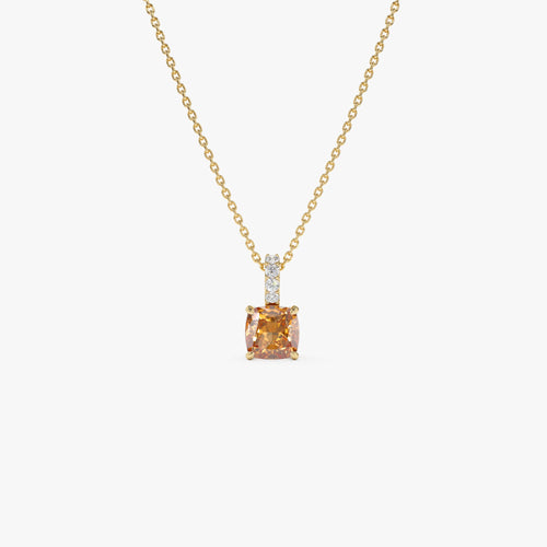 14K Cushion Cut Citrine with Diamond Bail